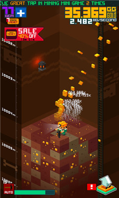 这些设计都像极了《比特币亿万富豪》,但《世纪之城》的表现方式更为讨巧一点点,它把玩家成千上万次点点点操作付出的汗水,转化成了一幢幢建筑物摆在你的面前,这比《比特币亿万富豪》里的那些、漫画书、挂画等等小东西要有成就得多,尽管它们的本质都是一样的。点击挣钱的操作在《世纪之城》中被放到了另一个场景地下矿井里,比手敲键盘的单调动画要有趣得多。