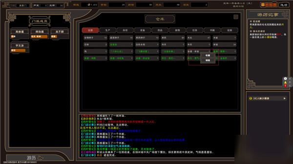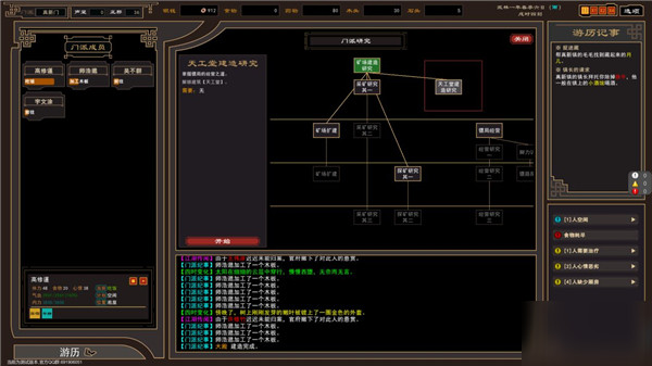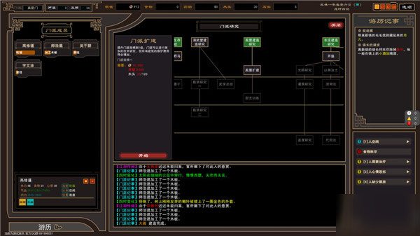 3、成为游戏中小势力的门派掌门,带领你的弟子在江湖中游历,潜心经营门派研究武学,提高门派实力;