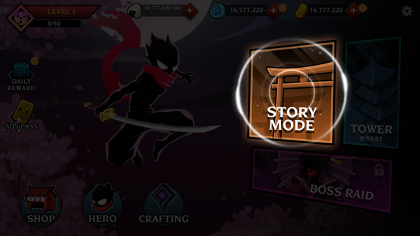 1、打开火柴人复仇4史诗战争最新版,点击story mode开始;