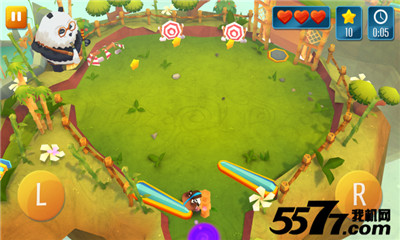 再一次的,我大天朝的国宝又变成了导师和功夫高手这类极富智慧和能力的角色,好吧,老外对于熊猫的理解自从《功夫熊猫》这部经典动画电影上映之后就一直 这样。开始游戏后,熊猫老师会给你简单地讲解游戏的玩法和操作,和同类弹珠台游戏一样,在屏幕的左下角设置了一个弹射装置,向下拖拽一定距离之后,松手便 可以将抱作一团的飞鼠弹射出去,接着点击左右半屏来操控两个活动挡板,操作方面还是比较传统的,无论你是否玩过弹珠台都能够轻松上手。