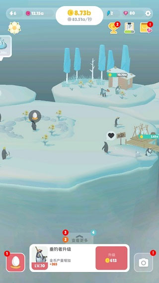 4、栖息地的数量、等级、进化决定了游戏最为重要的一件事——产出效率,其他的所有内容都是 为了它而服务的。玩家们每天上线后,首先会素质4连,领取离线、鲸鱼、礼物、小木箱奖励,而这些奖励具体的数量都是与产出效率直接相关的。再之后,玩家可以完成委托任务来升级研究,或者抽卡解锁新生命体来进一步提高产出效率。这些都完成了的话,玩家就只能给企鹅们拍拍照,收收爱心,发呆看看风景然后下线了。