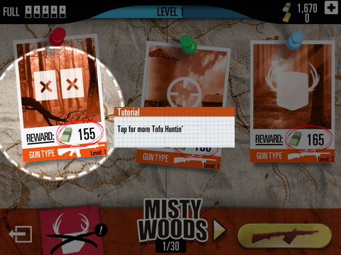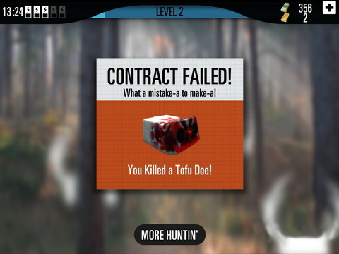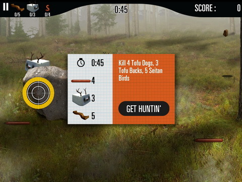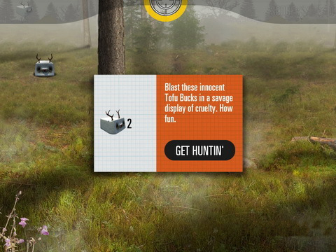 一款萌系射击游戏。游戏最特别之处在于,玩家们所要猎杀的不再是出没的野兽,而是一块块被装扮成小鹿形状的无辜的豆腐。每一关卡给予的射杀时间有所限制,玩家需要在时限之内利用不同武器尽可能干掉带有角的豆腐君,如果不慎杀死了没角的豆腐,则游戏结束。