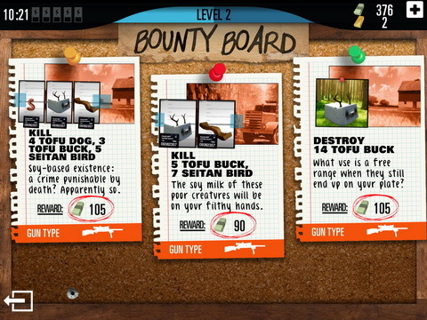 看来开发者对素食主义者已经到了极度厌恶的地步,才制作了这么个虐杀豆腐君的游戏!在这个开放的自由射击游戏中,玩家需要射击豆腐君,然后用它们来喂养纯素食主义者。玩家需要完成每一个关卡的目标,在时限之内利用不同武器击杀带有角的豆腐君,如果不慎杀死了没角的豆腐君,则游戏结束。