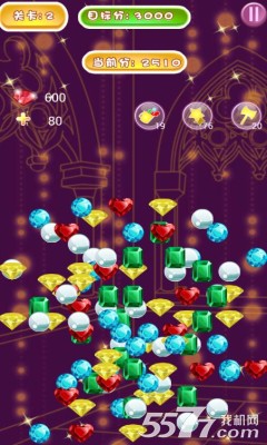 众多特色道具助力,锤子道具让您直接消灭那些落单的星星,变色道具您可以将100颗宝石都变成同一颜色,随机道具您可以改变钻石的布局!
