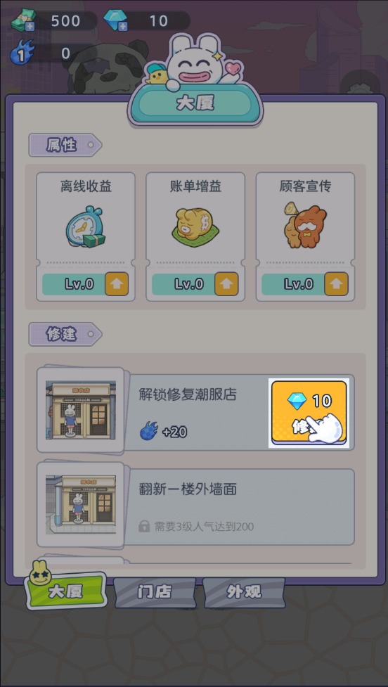 从修复第一块砖瓦开始,您可以根据自己的喜好定制大厦的每一个细节,从内部装修的风格到外部景观的主题。在游戏中,您将经营数个不同的店铺,招揽动物界形形色色的客人,解锁各类时髦的商品,收集舞动的拼图,让大厦起死回生并打造成独一无二的潮流街区!