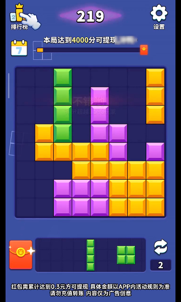 2、趣味简单俄罗斯方块消除类游戏,规则简单,操作轻松。