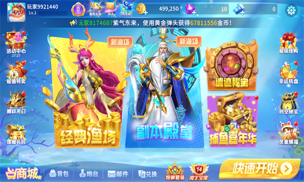 3、通过游戏中的金币或钻石,可以升级武器的威力和射速。尽量及时升级武器,提高捕鱼的效率和收益。