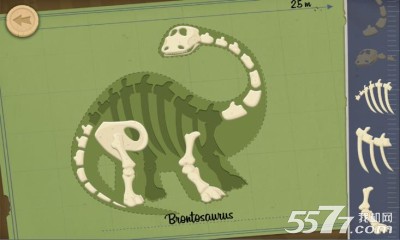 按照右侧的骨头形状,合理的摆放,将恐龙组合成功即可前往下一关卡。