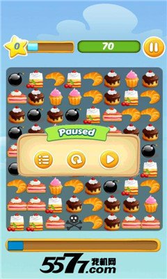 这款游戏和开心消消乐类似,通过移动蛋糕的位置可以消除相同形状的蛋糕,游戏中还有炸弹,消除的时候能同时消除大面积的蛋糕。