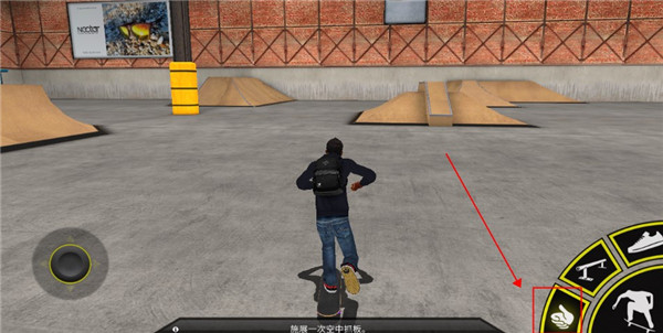 2、右边这个是抓板动作,按住不同方向和抓板可以组合成不同的抓板动作,也可以用于空中抓板,能够大幅度提升获得的分数