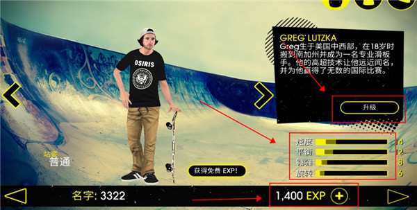 从8位角色中选择并完全按你的喜好进行自定义。从服装到滑板鞋,选择你最喜爱的装备。大量的滑板、支架、滑板轮和轴承可供选择,道具来自的厂商包括Airwalk、PowellPeralta、Bones、TorkTrux和IronFistClothing。