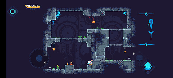 1、采用了鲜亮明快的像素画风,操纵主角在狭小地牢里闪转腾挪。