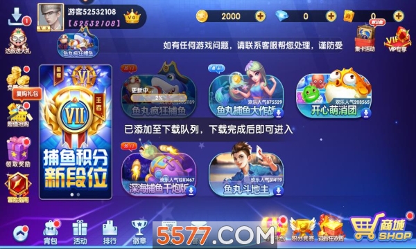有5款游戏供你选择,鱼丸疯狂捕鱼、鱼丸捕鱼大作战、开心萌消团、深海捕鱼千炮版、鱼丸斗地主;