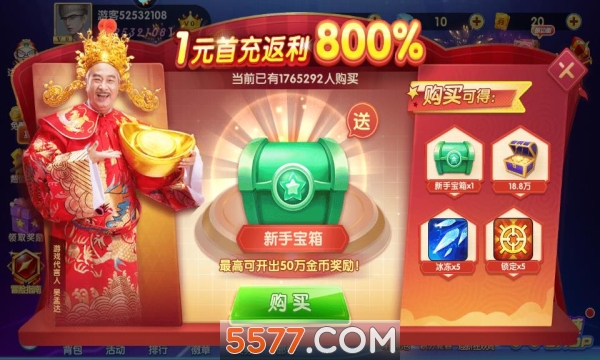 1元首冲800%,可以获得新手宝箱,18.8万金币,冰冻*5,锁定*5,新手宝箱最高可开出50万金币哟!