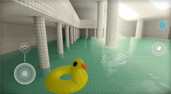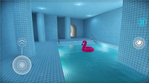 探索水池:在水深及脚踝的广阔区域中漫步,周围都是覆盖墙壁、地板和天花板的白色瓷砖。