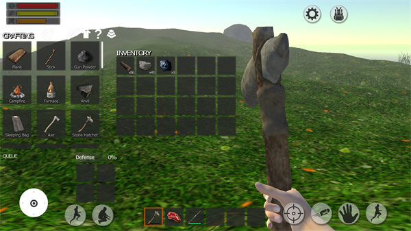 5、打开背包按钮可以利用收集的各种材料进行合成和创造,巧妙的使用新的工具,能让你存活的更轻松。