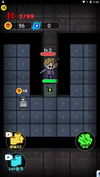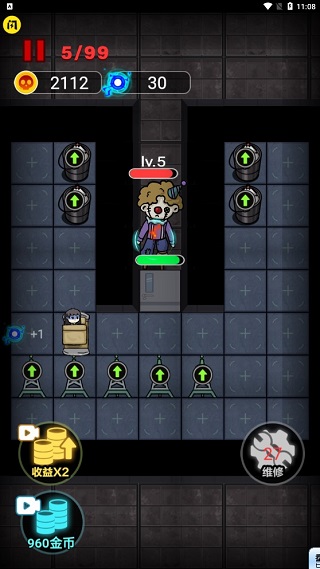 2、门能撑住的情况下,将金币优先投入到游戏机中,保证电力的生产。
