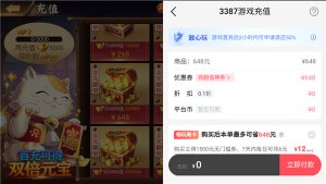 2、然后游戏任意找一个充值活动,点击购买648礼包,跳转支付自动选择优惠卷;