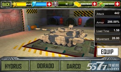 2、完成新手操作后,可以前往主菜单选择坦克购买你所喜爱的坦克,不同的坦克性能也不同;