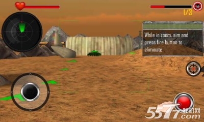 4、战斗开始后,摇杆控制坦克行走,左上角的雷达显示的是敌人的位置;
