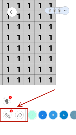 4、填色的方法也很简单,主要有两个按钮,分别为填色和擦除,只需要根据方块上数字使用指定的颜色,并在对应的地方涂上色彩就可以