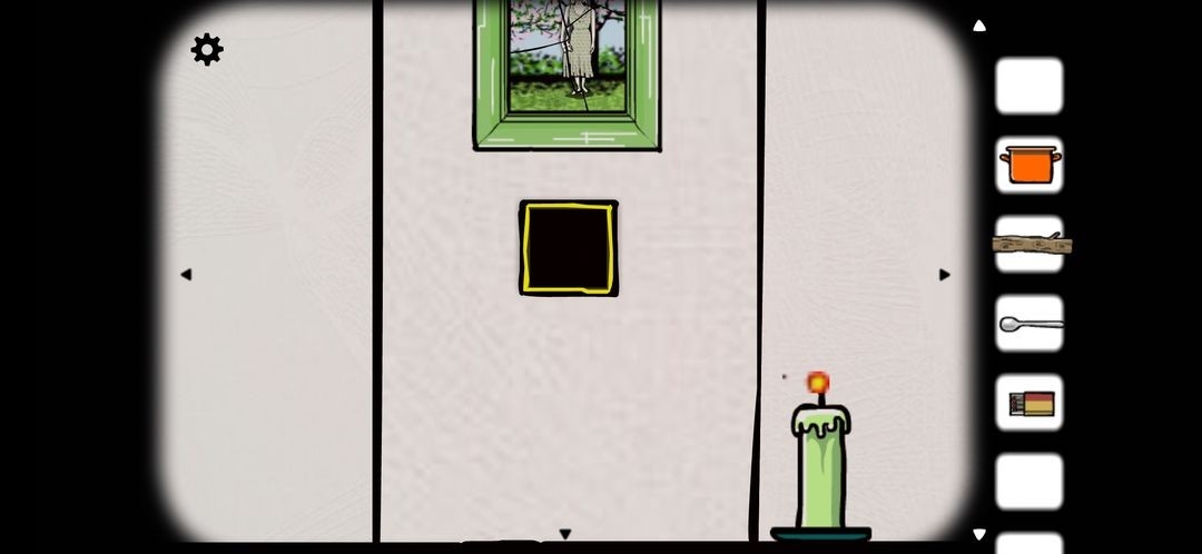 来到下一个场景,壁炉上摆放着蜡烛和相框。一旁上锁的柜子上,有一台收音机以及告示板。