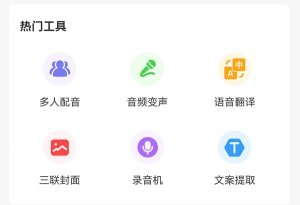 1、用户可在热门工具中使用多种功能,如多人配音、音频变声、语音翻译等。