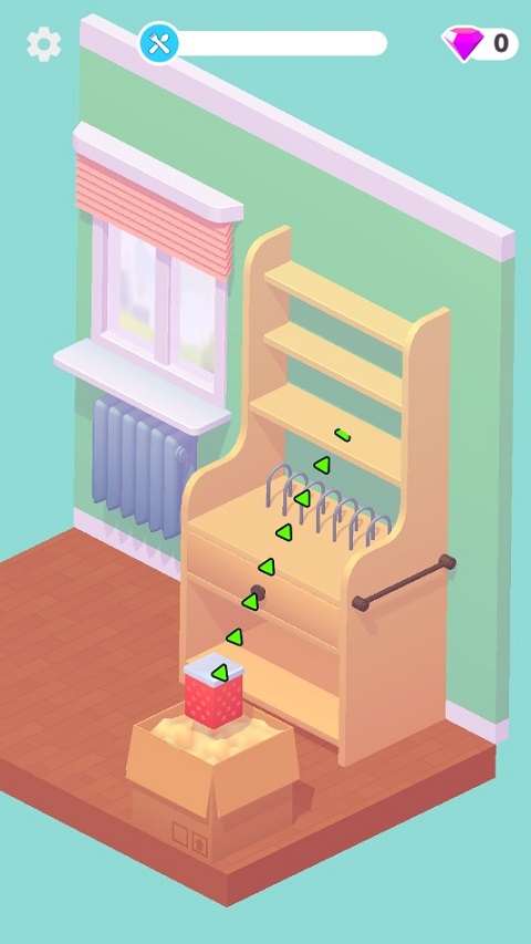 1、游戏是将物品从箱子里拿出来,然后把它们装进新家的游戏。